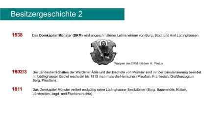In unserem Inforaum bieten wir eine interaktive Präsentation über die Burg Lüdinghausen an. Sie informiert über die